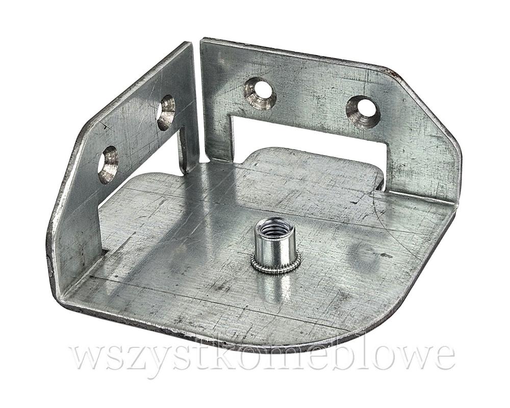 Łącznik narożny łóżka wykonany z wytrzymałej stali ocynkowanej. Idealnie nadaje się do montażu i wzmacniania konstrukcji ram łóżek. Wyposażona w nitonakrętkę na śrubę M8 – umożliwia szybki i łatwy montaż nóżek na śrubę M8