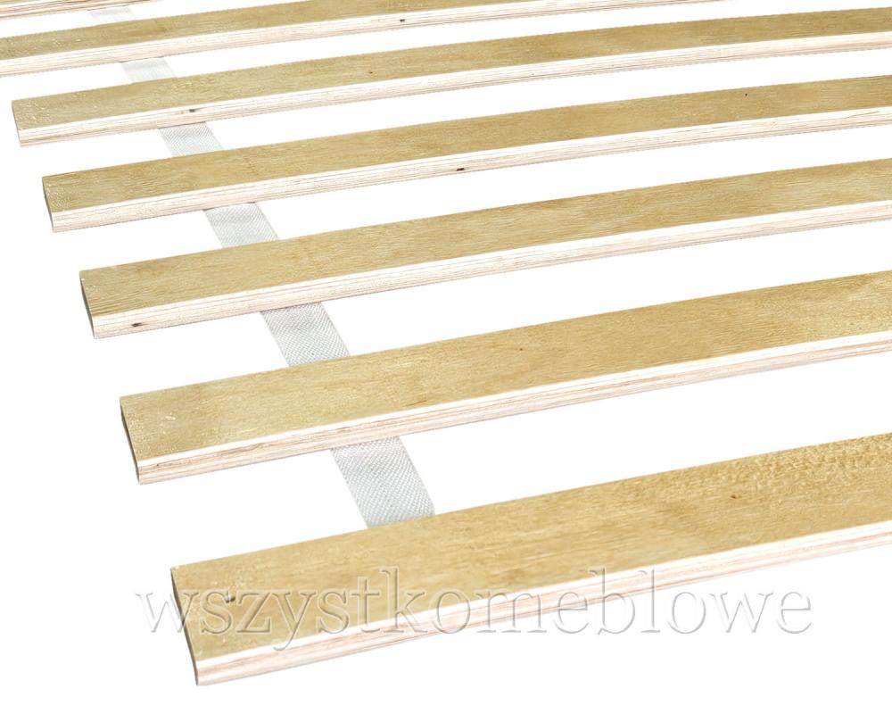 Stelaż wykonany z 34 elastycznych listew ze sklejki (po 17 listew każdy) połączonych wytrzymałym pasem tapicerskim. Optymalne rozmieszczenie listew zapewnia odpowiednią wentylację materaca przedłużając jego żywotność.