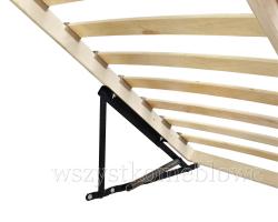 Praktyczna i solidna rama do łóżka o wymiarze 160x200 cm, wykonana w całości z wytrzymałej sklejki drewnianej. Konstrukcja oparta jest na sprężynujących listwach, które zapewniają odpowiednią elastyczność punktową. Rama wyposażona jest w metalowy podnośnik sprężynowy, umożliwiający łatwe i płynne uniesienie stelaża wraz z materacem.