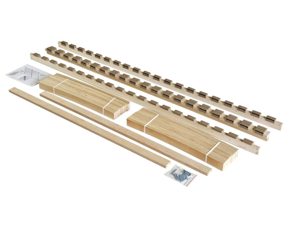 Stabilna i estetycznie wykonana rama o wymiarach 140x200 cm, oparta na elastycznych listwach sprężynujących. Gęste rozmieszczenie listewek zapewnia optymalną elastyczność konstrukcji oraz nadaje odpowiednią cyrkulacje powietrza w materacu przedłużając jego żywotność. Wszystkie elementy potrzebne do skręcenia ramy znajduje się w zestawie.