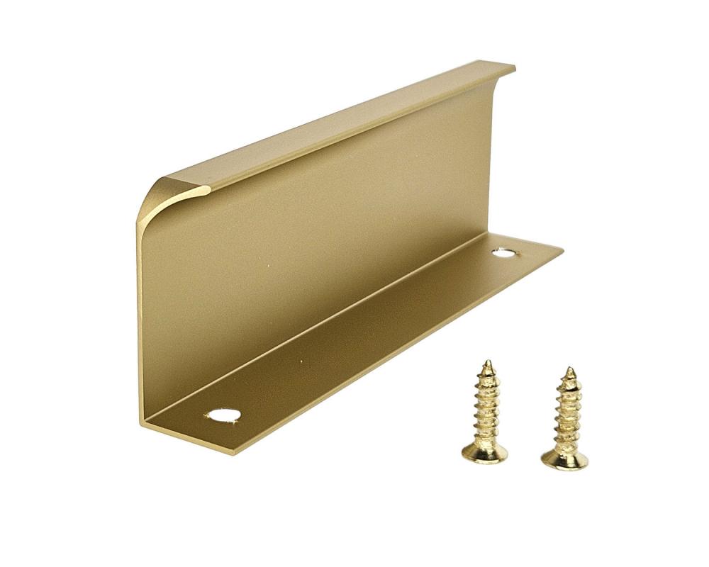 Uchwyt krawędziowy wykonany z wysokiej jakości aluminium malowanej proszkowo na kolor złoty. Konstrukcja w formie giętej blachy umożliwia szybki montaż wewnątrz płyty meblowej bez konieczności frezowania frontu. Otwory montażowe pozwalają na łatwe i stabilne przykręcenie uchwytu za pomocą wkrętów.